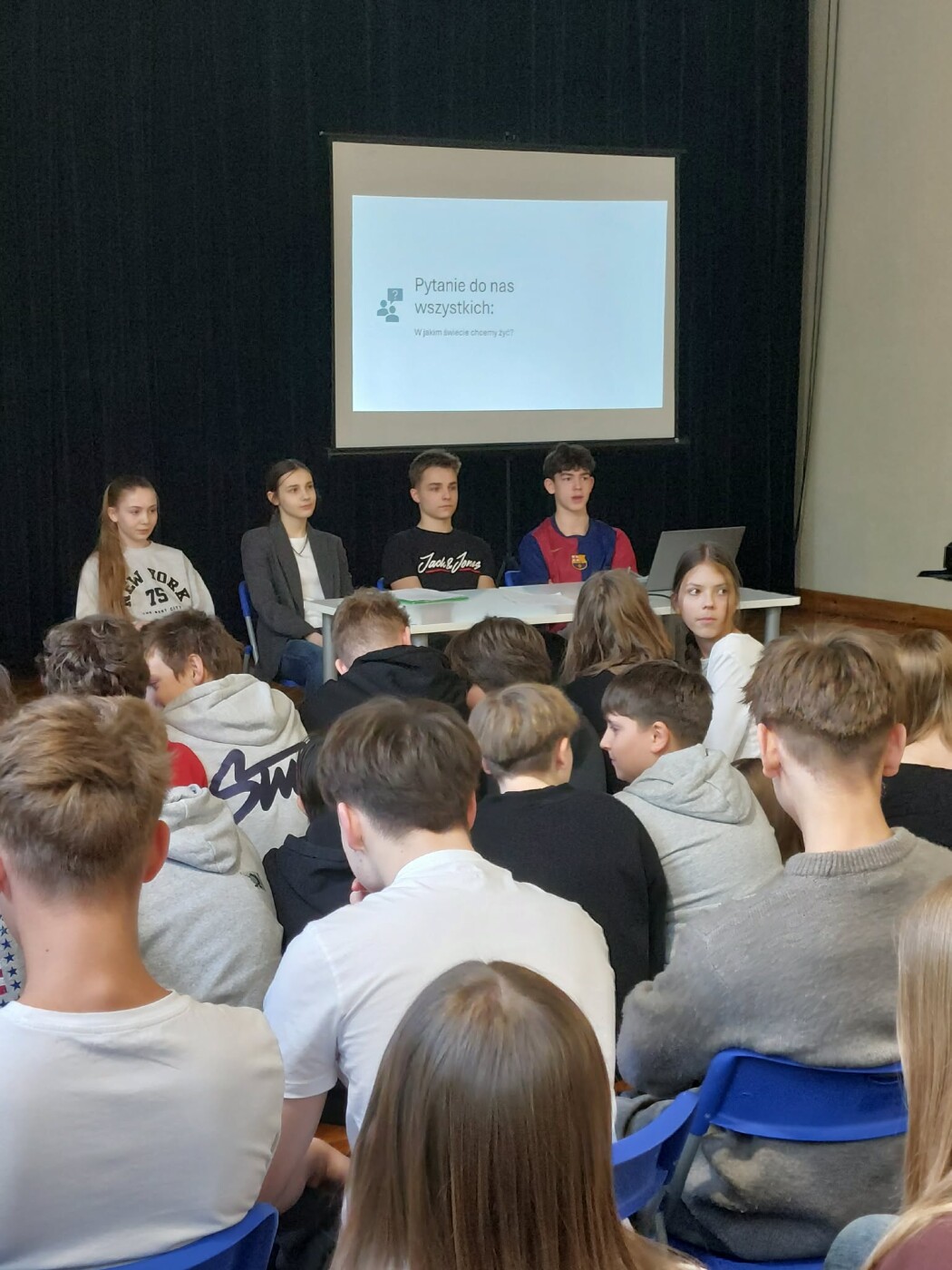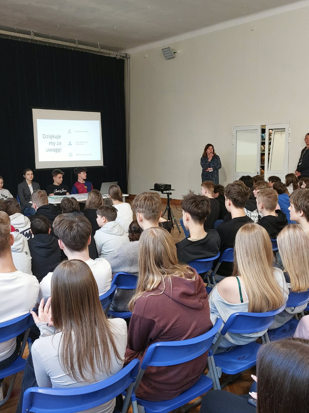 Empatia, życzliwość – siły, które zmieniają świat - pod takim hasłem klasa 8a pod kierunkiem p. Elżbiety Karwowskiej w czwartek 12.03. zaprezentowała aktualność zagadnienia. Prowadzącymi spotkanie byli: Stanisław Bańka, Julia Brzozowska, Anna Sajdych, Filip Opęchowski i Kacper Kosowski. Dobre przygotowanie i swoboda przekazu uświadomiły, że zachowania empatyczne mają wpływ nie tylko na innych, ale również na nas samych. Małe gesty kryją wielką moc i mogą zapobiegać złości, izolacji, a nawet zaburzeniom psychicznym.