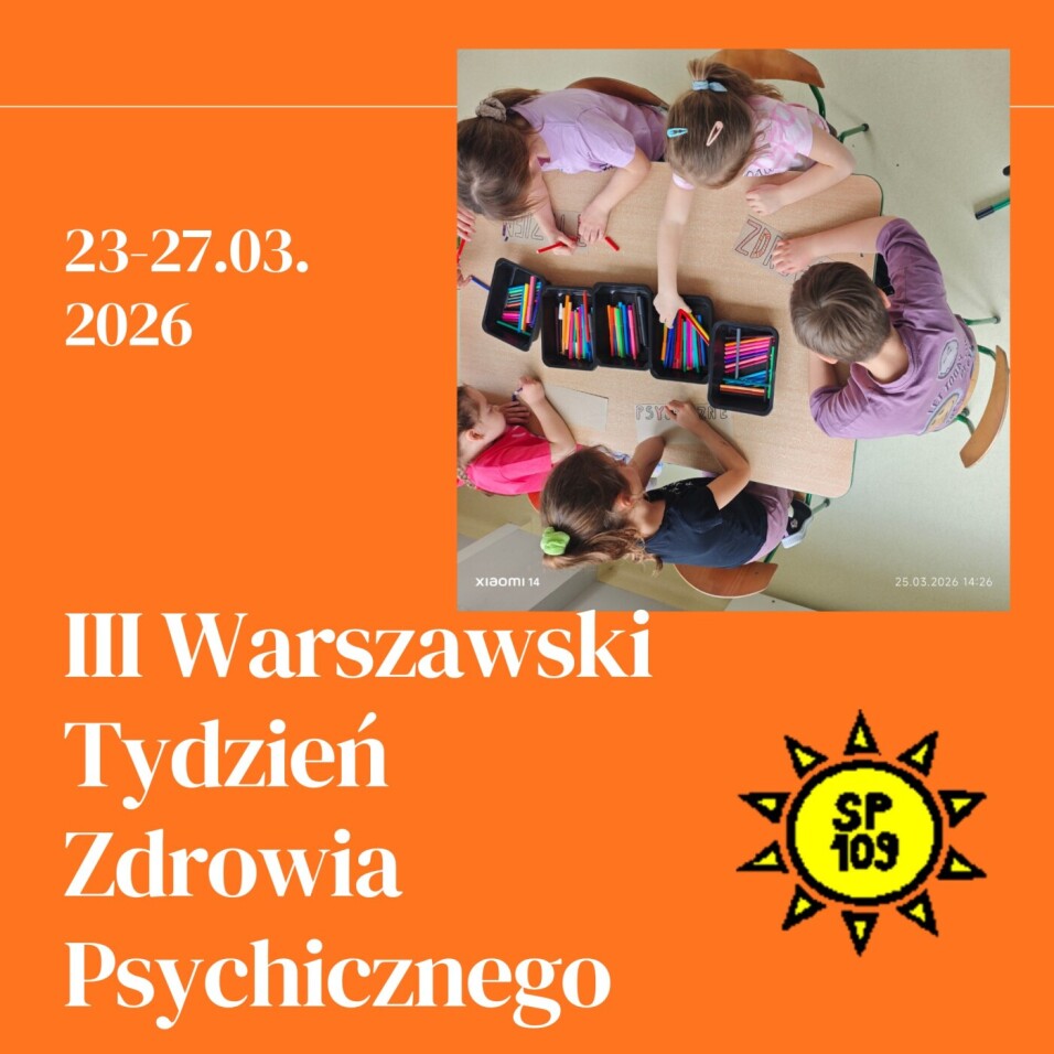 W dniach 23-27 marca 2026 nasza szkoła brała udział w III Warszawskim Tygodniu Zdrowia Psychicznego. Tematy poszczególnych dni dotyczyły poznawania emocji, radzenia sobie z trudnymi emocjami, empatii i dbania o relacje, dbania o siebie oraz gdzie można szukać pomocy.