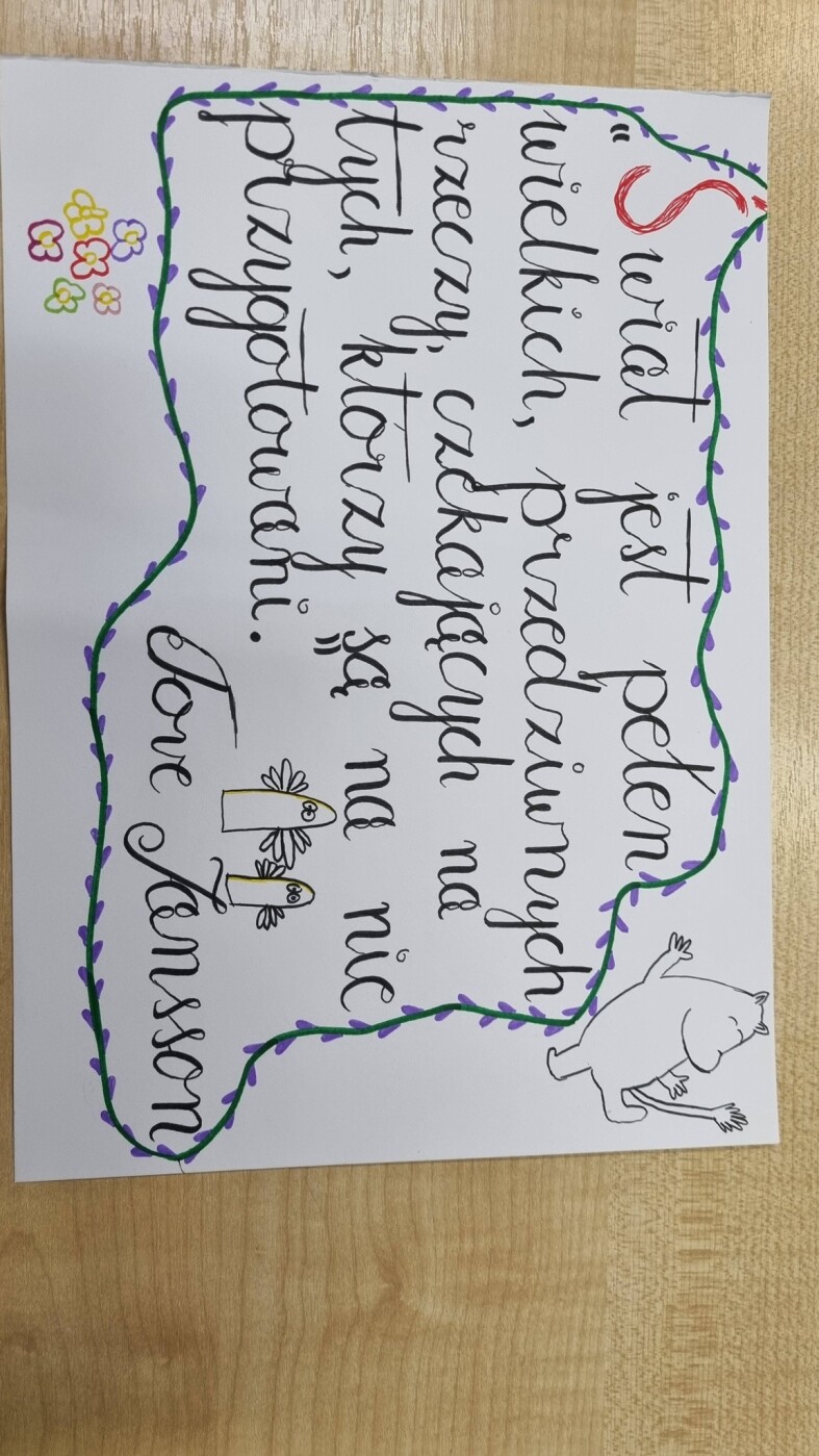 Teksty do pięknego pisania zostały przez organizatora Academy International Wawer wraz z Warszawskim Domem Kaligrafii wybrane ponieważ Muminki świętowały swoje 80. urodziny w 2025 roku. 80 lat postaci, które pokochały miliony czytelników na całym świecie.