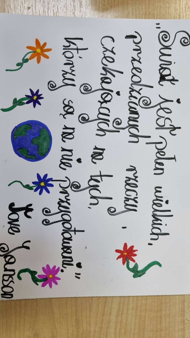 Szkolny etap IX OGÓLNOPOLSKIEGO KONKURSU KALIGRAFICZNEGO IM. JANUSZA KORZENIOWSKIEGO "Piórem I pazurem" już za nami. Czekamy na ogłoszenie wyników. W tym roku zadanie konkursowe w etapie szkolnym polegało na pięknym przepisaniu zadanego tekstu z możliwością ozdobienia tekstu iluminacjami, inicjałem lub bordiurą.
