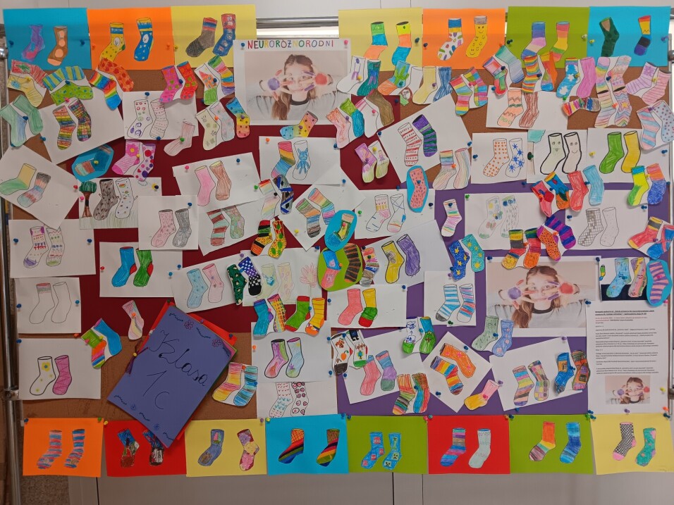 W dniu 26.09.2025 r. w naszej szkole odbyła się Kampania społeczna pt. Szkoła przyjazna dla neuroróżnorodności, szkoła przyjazna dla każdego człowieka. W tym dniu uczniowie klas 0-3 kolorowali skarpetki nie do pary, a uczniowie klas 4-8 zakładali skarpetki nie do pary. W klasach odbyły się pogadanki na temat neuroróżnorodności, młodsze dzieci zostały zachęcone do nauczenia piosenki pt. Jesteśmy różni, a starsi uczniowie obejrzeli film edukacyjny.