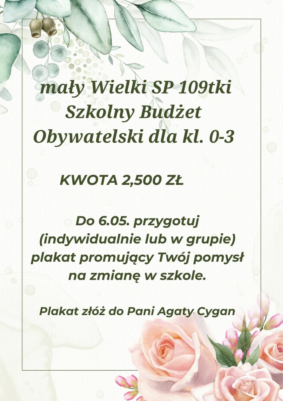 W naszej SP 109 ruszyła trzecia edycja Małego Szkolnego Budżetu Obywatelskiego dla kl. 0-3.