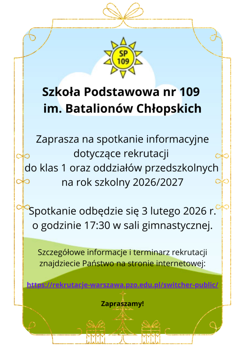 Zapraszamy na spotkanie informacyjne dotyczące rekrutacji do klas 1 oraz oddziałów przedszkolnych.