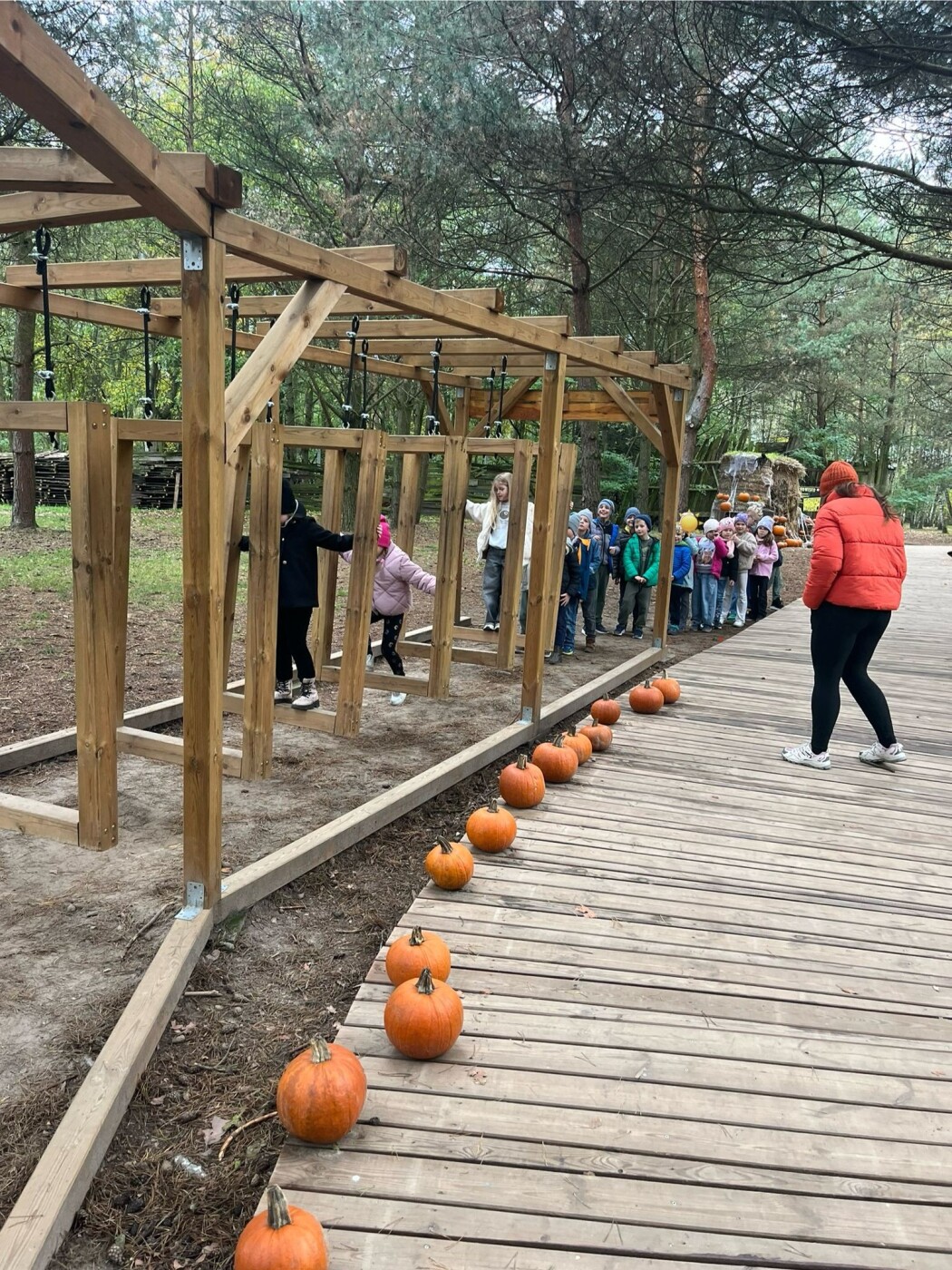 oraz zabaw konstrukcyjnych. Był to czas pełen twórczych działań i niezapomnianych wrażeń. Uczniowie wzięli udział w warsztatach plastycznych, podczas których ozdabiali własne dynie. Nie zabrakło także gier terenowych, przejażdżki kolejką