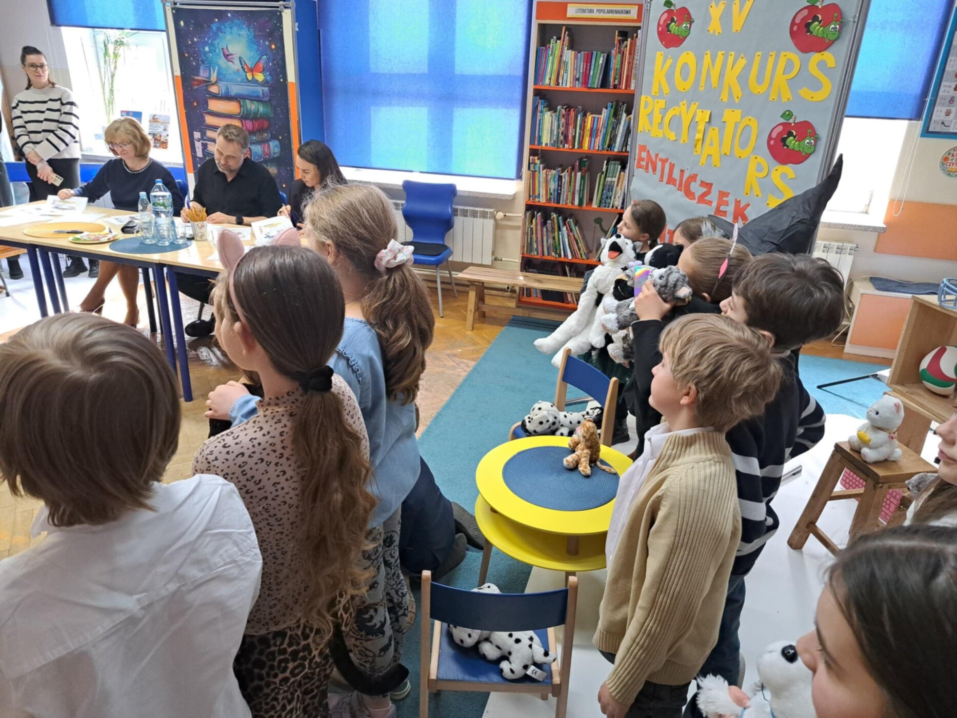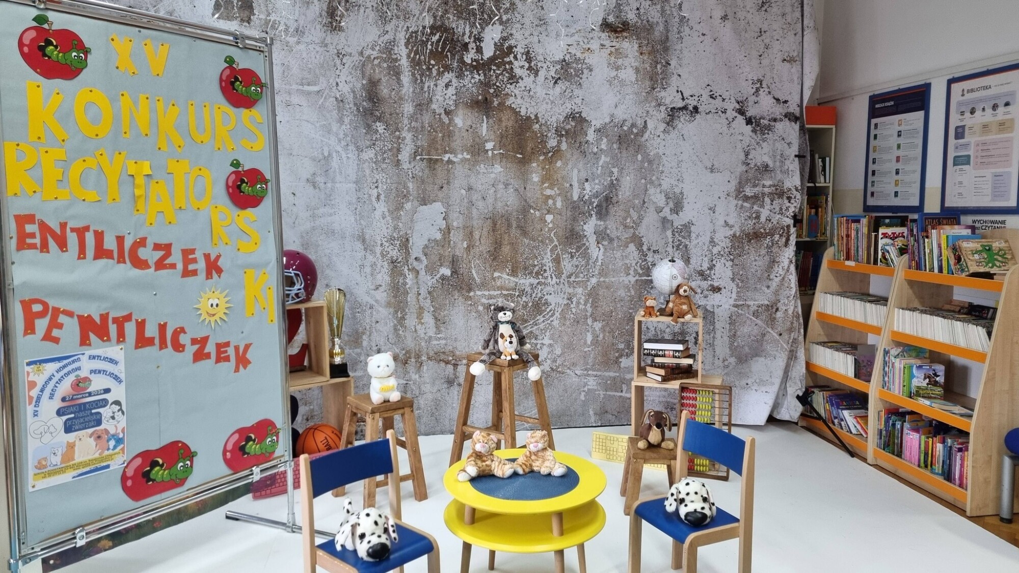 27 III w Światowym Dniu Teatru w bibliotece odbył się finał dzielnicowego konkursu recytatorskiego. Uczestników konkursu przywitała pani dyrektor Hanna-Ratańska-Szot. W jubileuszowej XV. edycji ENTLICZKA PENTLICZKA jury w składzie: Olga Nowicka, Łukasz Nowicki, Beta Wojdat miało arcytrudne zadanie... dzieci prezentowały wiersze o naszych przyjacielskich zwierzakach- kociakach i psiakach jak profesjonalni aktorzy.